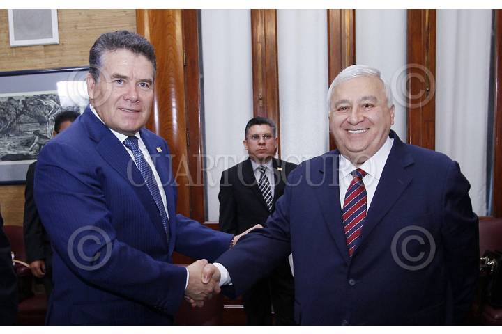 MÉXICO, D.F., 24MARZO2015.- Juan Díaz de la Torre, presidente del Consejo General Sindical del SNTE; y Emilio Chuayffet Chemor, Secretario de Educación Pública; durante la ceremonia de entrega del Pliego Nacional de Demandas 2015 en materia salarial y de prestaciones en la sede de la SEP. FOTO: SEP /CUARTOSCURO.COM