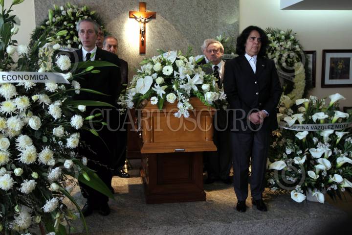 MÉXICO, D.F., 23OCTUBRE2010.- Joaquín Diez-Canedo, director del Fondo de Cultura Económica y Consuelo Sáizar, presidenta del Consejo Nacional de Cultura y las Artes, montaron una guardia de honor en el funeral del escritor nayarita Alí Chumacero, quien murió a la edad de 92 años víctima de neumonía. Los restos del hombre de letras serán homenajeados mañana en el Palacio de Bellas Artes. FOTO: IVÁN MENDEZ/CUARTOSCURO.COM