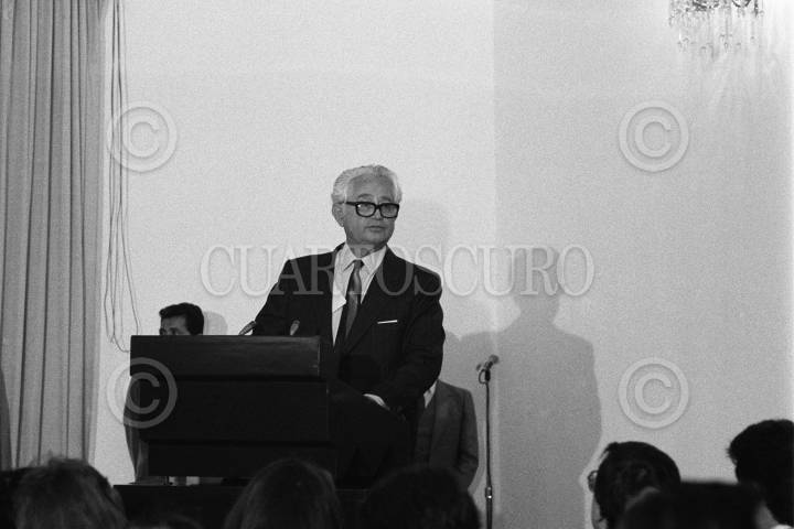 MÉXICO, D.F., 23OCTUBRE2010.- En imagen de archivo de mayo de 1987 durante la entrega de un reconocimiento a Alí Chumacero. El hombre de letras Alí Chumacero, falleció ayer a los 92 años en un hospital de la ciudad de México, víctima de neumonía. El escritor nacido en un pueblecito pequeño llamado Acaponeta, Nayarit, el 9 de junio de 1918 alguna vez señalo "me iré satisfecho porque le di al mundo lo que le quise dar y tomé del mundo lo que quise tomar. Mañana recibirá un homenaje en el Palacio de Bellas Artes. FOTO: ARCHIVO/PEDRO VALTIERRA/CUARTOSCURO.COM