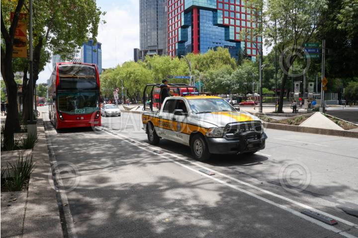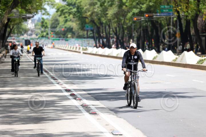 CIUDAD DE MÉXICO, 29JUNIO2025.- Ante la suspensión del tradicional Paseo Ciclista dominical, ciclistas que salieron a rodar esta mañana utilizaron la ciclovía, ya que la circulación vehicular permanecía abierta. Patrullas de la Secretaría de Seguridad Ciudadana (SSC) emitieron recomendaciones por altavoz para prevenir incidentes. FOTO: MOISÉS PABLO/CUARTOSCURO.COM