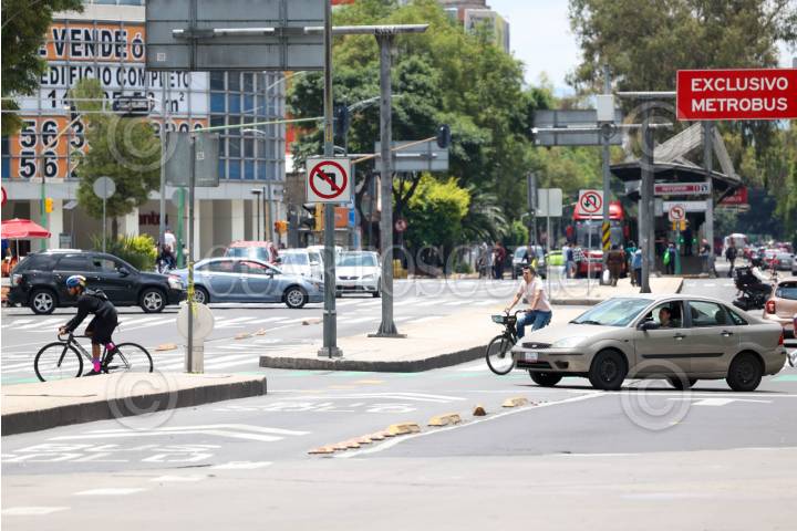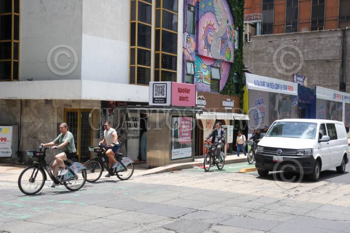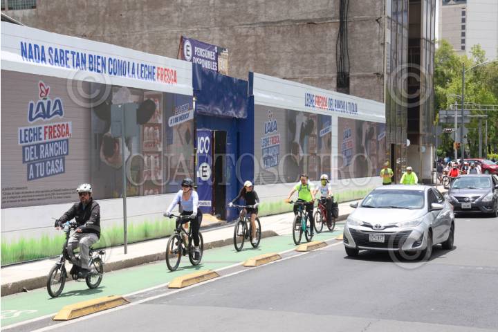 CIUDAD DE MÉXICO, 03AGOSTO2025.- La Secretaría de Obras y la de Movilidad de la capital comenzaron la prueba piloto de la nueva ciclovía que recorrerá Calzada de Tlalpan desde el Zócalo hasta el Estadio Azteca. FOTO: DANIEL AUGUSTO/ CUARTOSCURO.COM