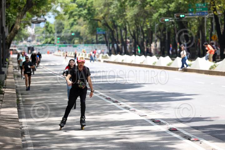 CIUDAD DE MÉXICO, 06JULIO2025.– En familia, capitalinos disfrutan del Paseo Ciclista en avenida Juárez. A pie, en bicicleta o en silla de ruedas, aprovechan para pasar tiempo juntos en esta zona de las avenidas Juárez y Reforma, que entre semana suelen estar saturadas de vehículos. FOTO: MOISÉS PABLO /CUARTOSCURO.COM