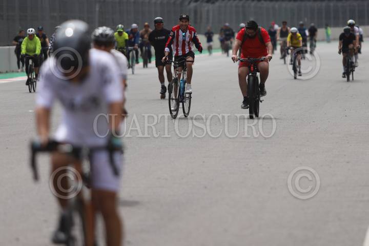 CIUDAD DE MÉXICO, 27JULIO2025.- Cientos de ciclistas aprovecharon la apertura del Autódromo Hermanos Rodríguez para participar en el ciclotón de este domingo. FOTO: DANIEL AUGUSTO/ CUARTOSCURO.COM