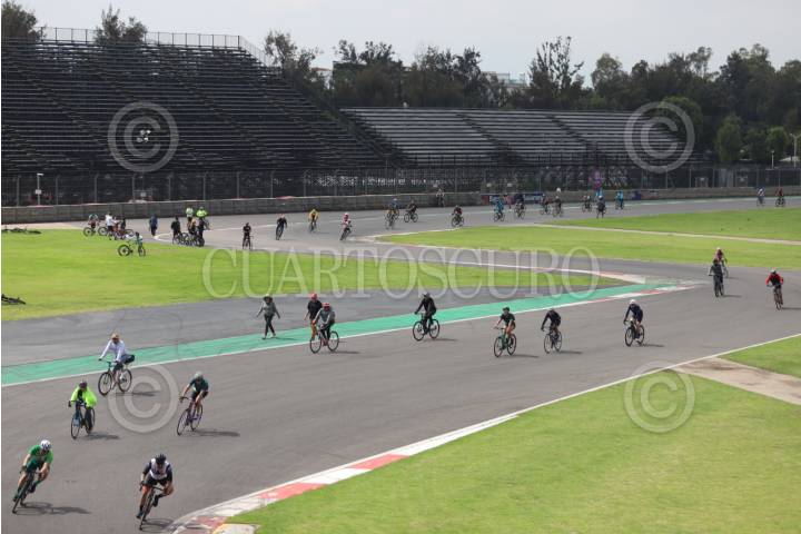 CIUDAD DE MÉXICO, 27JULIO2025.- Los ciclistas aprovecharon la mañana de este domingo para participar en el ciclotón, el cual se llevó a cabo en el Autódromo Hermanos Rodríguez. FOTO: DANIEL AUGUSTO/ CUARTOSCURO.COM