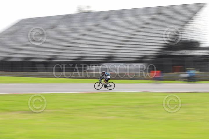 CIUDAD DE MÉXICO, 27JULIO2025.- Un ciclista recorre la pista del Autódromo Hermanos Rodríguez durante el ciclotón de este domingo. FOTO: DANIEL AUGUSTO/ CUARTOSCURO.COM