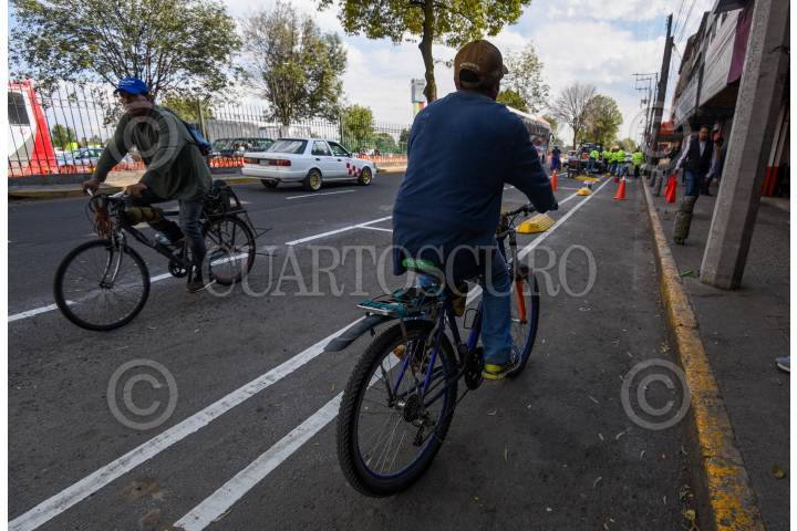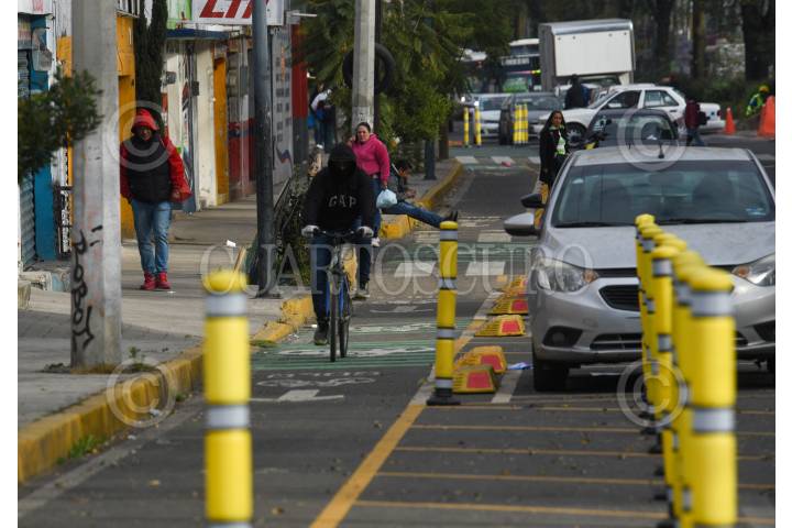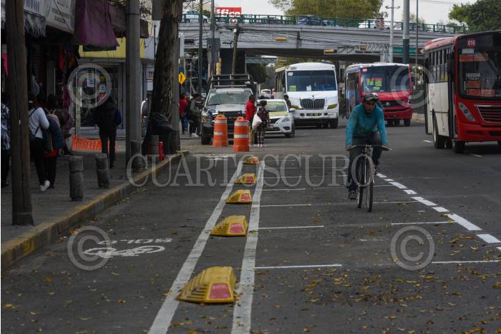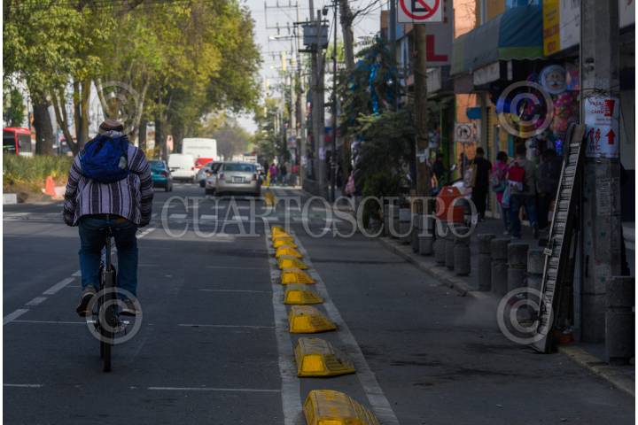 TOLUCA, ESTADO DE MÉXICO, 05DICIEMBRE2024.- A pesar del rechazo por parte de comerciantes de la avenida Isidro Fabela a la ciclovía, esta ya tiene un avance en la obra del 67 por ciento, la cual beneficiará a cerca de 1500 ciclistas que transitan de manera diaria por esta zona, siguen encontrándose con algunos obstáculos para circular sobre la misma pero ya la utilizan. FOTO: CRISANTA ESPINOSA AGUILAR /CUARTOSCURO.COM