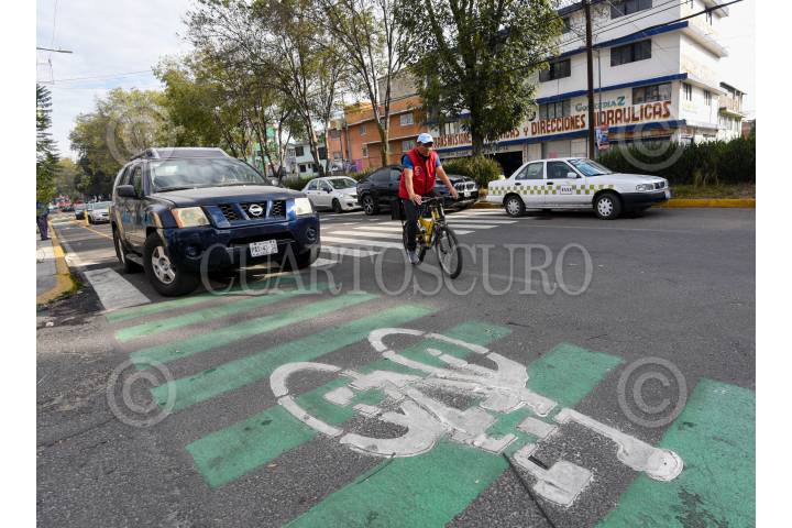 TOLUCA, ESTADO DE MÉXICO, 05DICIEMBRE2024.- Daniel Sibaja Secretario de Movilidad del Estado de México en compañía de integrantes de la Agencia de Estados Unidos para el Desarrollo Internacional (USAID) y el Instituto de Políticas para el Transporte y el Desarrollo (ITDP) realizó un recorrido por la ciclovía de la avenida Isidro Fabela en Toluca, la obra lleva un avance físico del 67 por ciento, con los señalamientos de la ciclovía, pintura en cajones y carriles, delimitadores y dispositivos de control y construcción de guarniciones y banquetas, con una inversión de 15 millones de pesos y que beneficia a casi 1500 ciclistas diariamente. FOTO: CRISANTA ESPINOSA AGUILAR /CUARTOSCURO.COM
