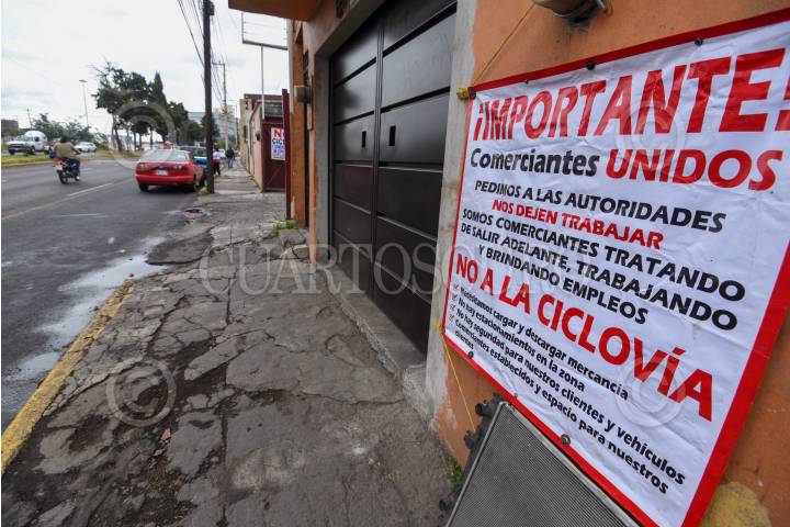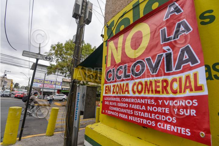 TOLUCA, ESTADO DE MÉXICO, 20JUNIO2024.- Vecinos, locatarios y comerciantes del Boulevard Isidro Fabela Norte y Sur instalaron mantas en diversos negocios en rechazo a la Ciclovía proyecto que abarcaría 8 kilómetros, aseguran que se verán afectados económicamente de llevarse a cabe el proyecto, ya que sus clientes y proveedores no tendrían donde estacionarse entre otras cosas. FOTO: CRISANTA ESPINOSA AGUILAR /CUARTOSCURO.COM