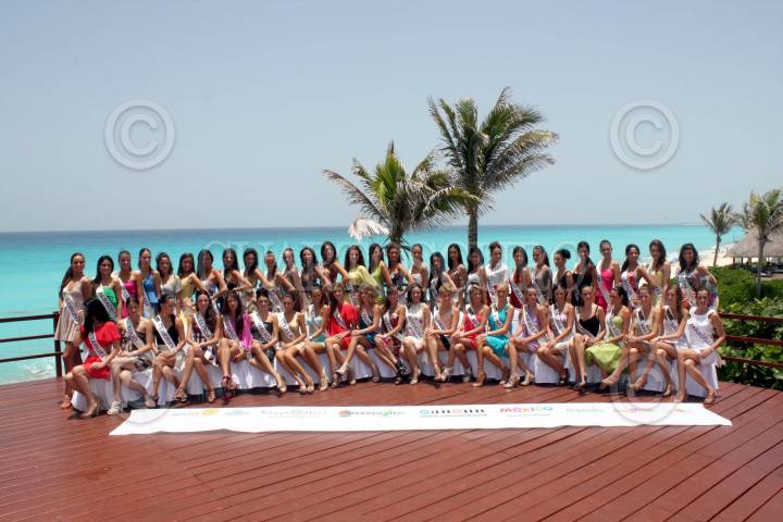 CANCÚN, QUINTANA ROO. 07JULIO2009.- La foto oficial de 52 candidatas durante la rueda de prensa para dar a conocer los pormenores del evento Miss España que se realizará en esta ciudad el próximo 18 de julio. FOTO: AMARANTA PRIETO/CUARTOSCURO.COM