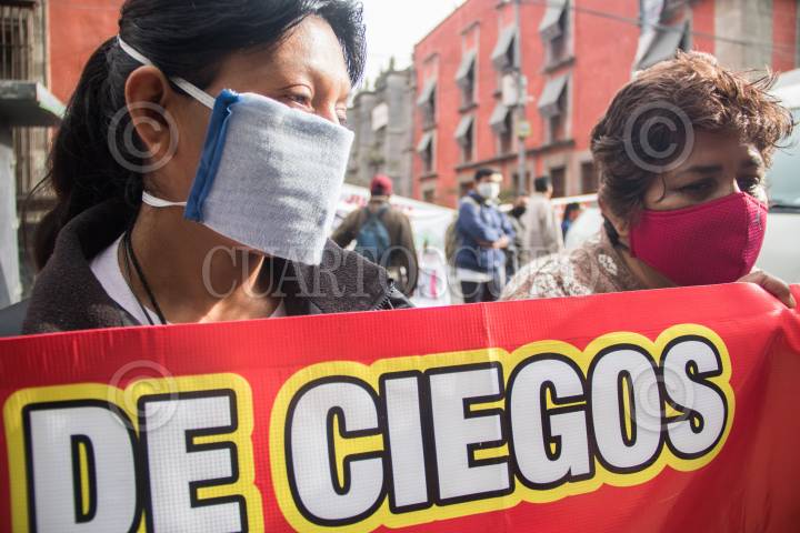 Ciegos y débiles visuales, se manifestaron en la calle de Moneda, exigen que los policías que vigilan el Metro, les den buen trato porque los discriminan abusan y extorsionan.