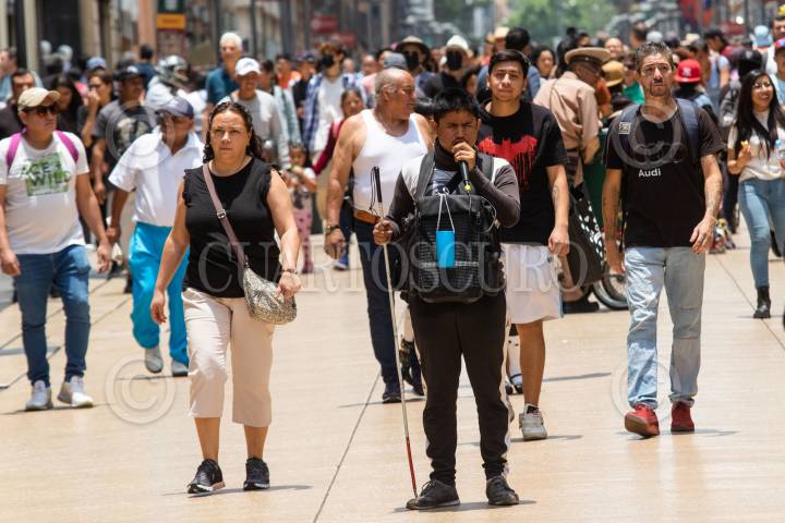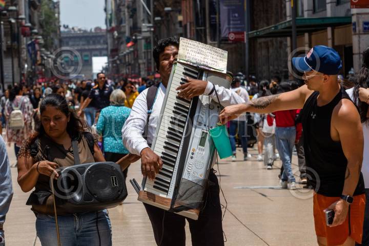 CIUDAD DE MÉXICO, 23ABRIL2025.- Un señor con discapacidad visual toca algunas melodías en la calle de Madero en el Centro Histórico. FOTO: GRACIELA LÓPEZ/CUARTOSCURO.COM