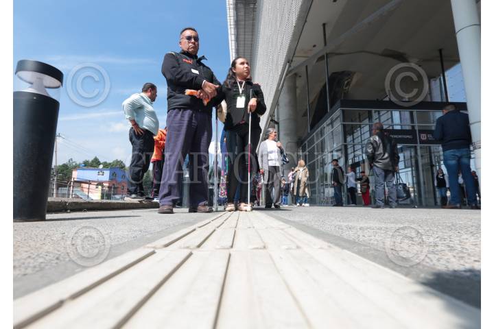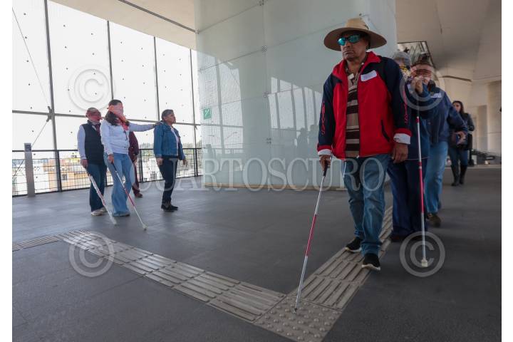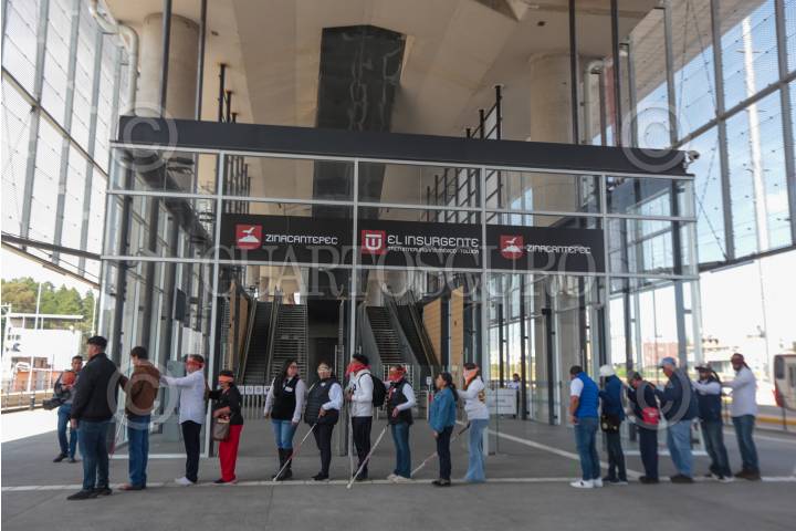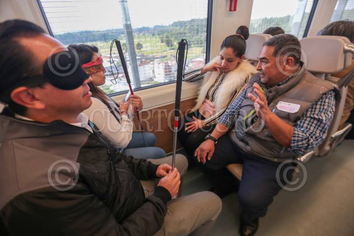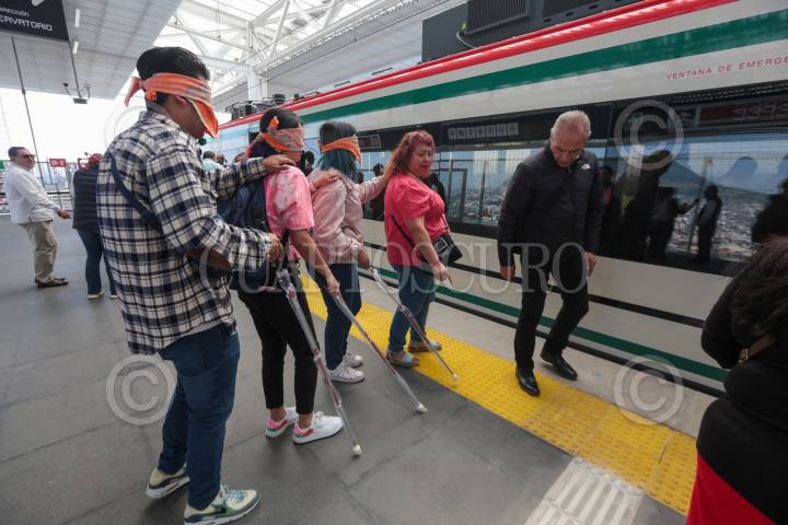 TOLUCA, ESTADO DE MÉXICO, 17OCTUBRE2023.- En el marco del Día Internacional al del Bastón Blanco fue organizado un recorrido en el Tren Interurbano “El Insurgente” para personas ciegas, débiles visuales y población en general con el objetivo de sensibilizar a la ciudadanía sobre las dificultades a las que se enfrentan al utilizar medios de transporte como este; este viaje fue organizado por el DIFEM y se dio también una capacitación para conocer los usos y significados del Bastón Blanco. FOTO: CRISANTA ESPINOSA AGUILAR /CUARTOSCURO.COM