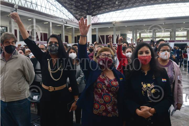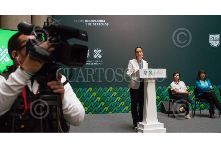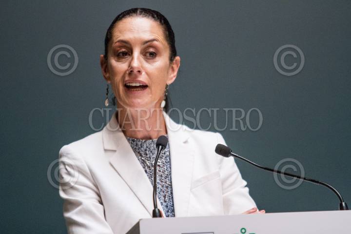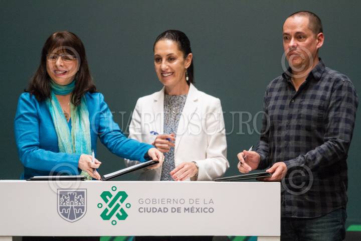CIUDAD DE MÉXICO, 26AGOSTO2019.- Claudia Sheinbaum Pardo, jefa del Gobierno de la Ciudad, junto con María Elena Álvarez-Buylla Roces, directora del Conacyt, además de José Merino, firmaron esta mañana un Convenio de Colaboración en Materia de Datos y Calidad del Aire. El evento tuvo lugar en el patio central del Antiguo Palacio del Ayuntamiento. FOTO: VICTORIA VALTIERRA /CUARTOSCURO.COM