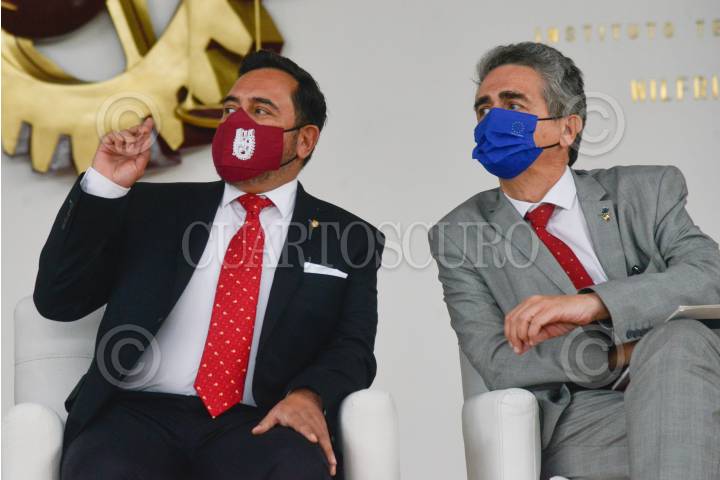 Arturo Reyes Zandoval, director general del Instituto Politécnico Nacional (IPN), y Jean-Pierre Bou, Jefe Adjunto de la Delegación de la Unión Europea en México, durante la inauguración del Primer Foro IPN Internacional “Conectado la Educación, la Ciencia y la Tecnología”, celebrado en las instalaciones del Centro Histórico y Cultural Juan de Dios de la Unidad Profesional Lázaro Cárdenas.