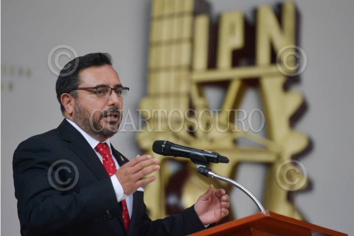 Arturo Reyes Zandoval, director general del Instituto Politécnico Nacional (IPN), durante la inauguración del Primer Foro IPN Internacional “Conectado la Educación, la Ciencia y la Tecnología”, celebrado en las instalaciones del Centro Histórico y Cultural Juan de Dios de la Unidad Profesional Lázaro Cárdenas.
