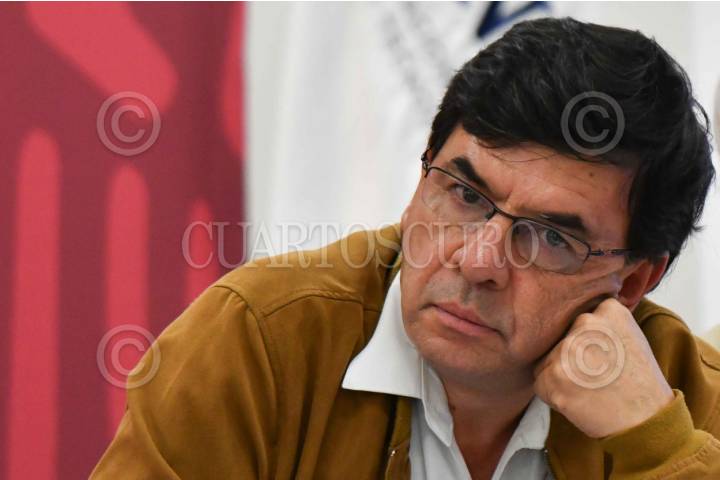 CIUDAD DE MÉXICO, 27MARZO2024.- Víctor Suárez Carrera, Subsecretario de Autosuficiencia Alimentaria de la Secretaría de Agricultura y Desarrollo Rural, durante la conferencia en la que se habló sobre las acciones del Gobierno de México que den cumplimiento al decreto para prescindir del glifosato en México, y producir alimentos sin agrotóxicos. FOTO: MARIO JASSO/CUARTOSCURO.COM