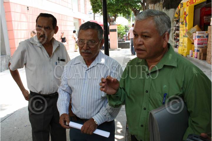 CHILPANCINGO, GUERRERO., 07MAYO2008.- En conferencia de prensa los señores Jaime Martinez de la colonia Los Fresnos, Arturo Miranda de la Cienega de los Lopez y Estefano Chavez Venancio de la colonia Ruben Figueroa, informaron sobre la creación de un Frente de Colonias creado para defender y recuperar sus terrenos que han sido invadidos por “paracaidistas” ante el nulo apoyo por parte del gobierno municipal y estatal. FOTO: OSCAR ALVARADO/CUARTOSCURO.COM