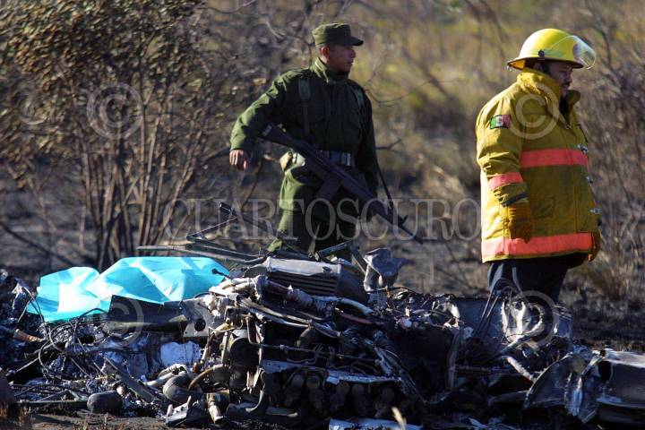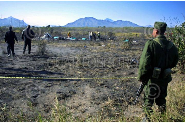 CIENEGA DE FLORES, NUEVO LEON 14DICIEMBRE2004.- Dos tripulantes y tres pasajeros de una avioneta bimotor, perdieron la vida minutos después de despegar FOTO: Jorge López/CUARTOSCURO.COM