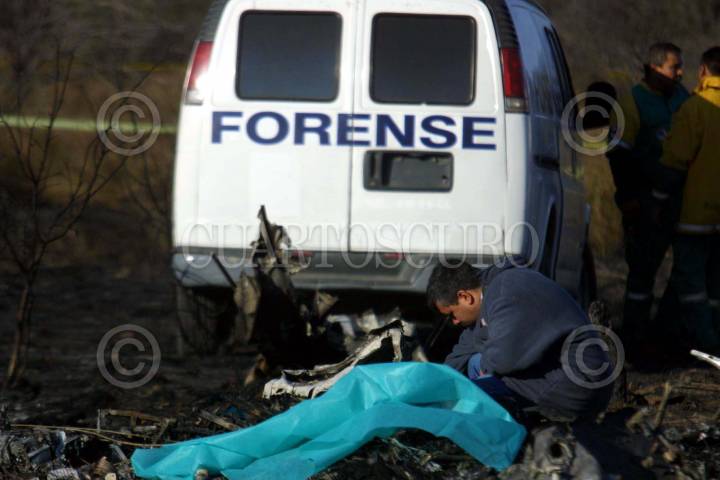 CIENEGA DE FLORES, NUEVO LEON 14DICIEMBRE2004.- Cinco tripulantes de una avioneta doble motor, perdieron la vida minutos después de despegar del aeropuerto del norte del municipio de Escobedo. Hasta ahora, se desconoce la causa del accidente. FOTO: Jorge López/CUARTOSCURO.COM