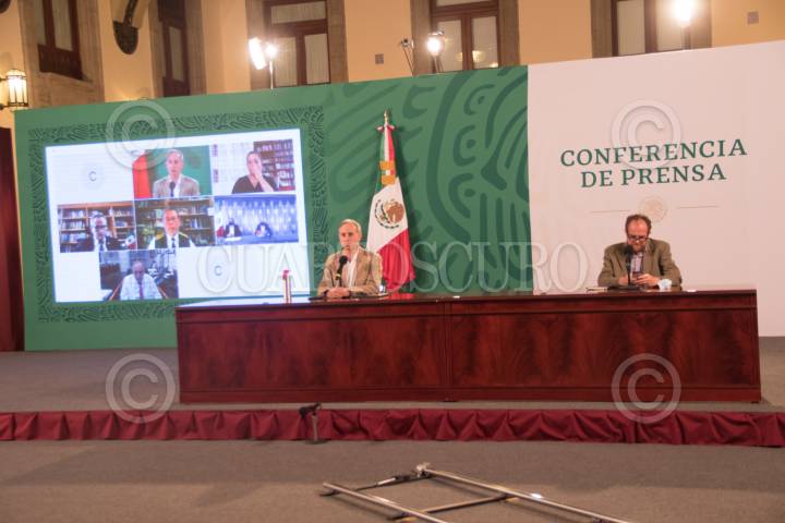 María Elena Álvarez-Buylla, directora general del CONACYT; Arturo Reyes Sandoval, director general del IPN, y Hugo López-Gatell, subsecretario de Prevención y Promoción de la Salud, durante el evento protocolario de la inauguración y sellado simbólico del Laboratorio Nacional de Vacunología y Virus Tropicales localizado al interior de la ENCB del Politécnico.