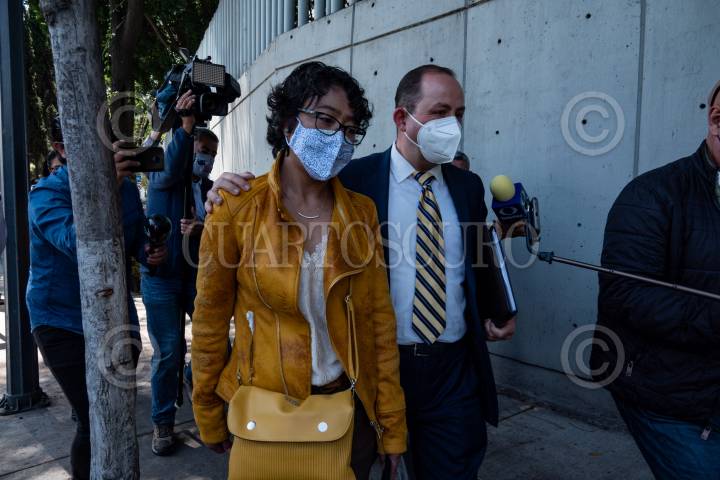 María Mónica Ramírez se retira de la FEMDO tras rendir su declaración ante las acusaciones por delincuencia organizada y desvío de recursos del Consejo Nacional de Ciencia y Tecnología (Conacyt).
