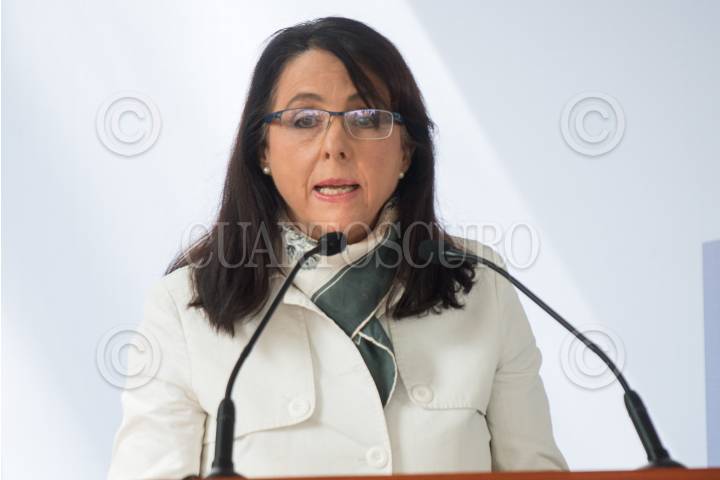 María Elena Álvarez-Buylla, directora general del CONACYT, durante el evento protocolario de la inauguración y sellado simbólico del Laboratorio Nacional de Vacunología y Virus Tropicales localizado al interior de la ENCB del Politécnico.