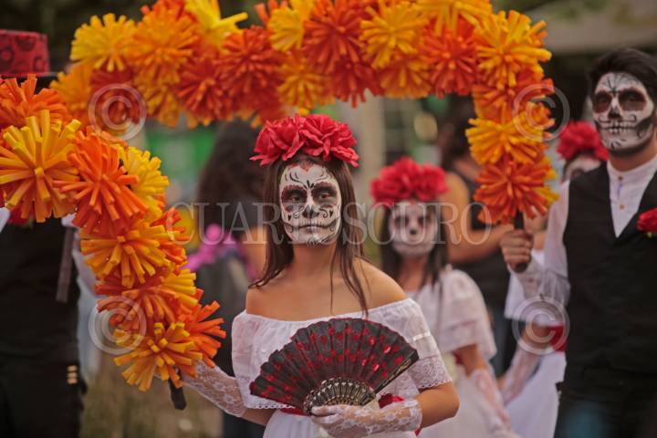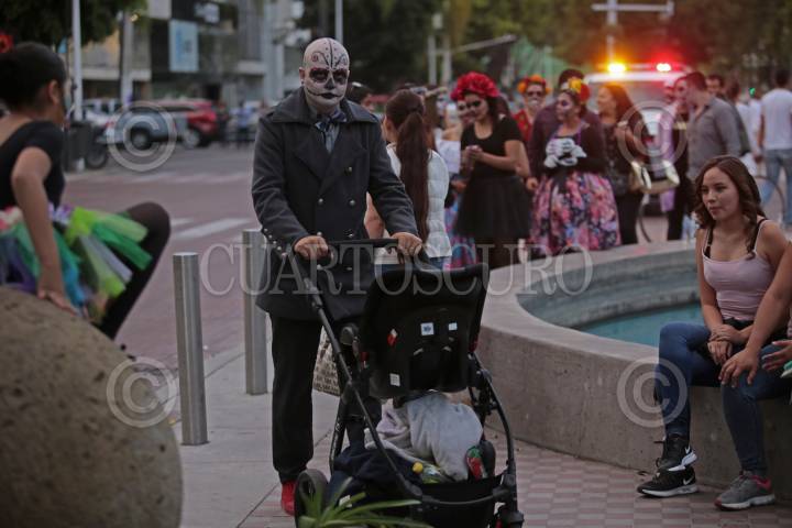 GUADALAJARA, JALISCO. 28OCTUBRE2017.- La tarde de hoy cientos de personas desfilaron caracterizados de Catrinas por las principales calles de la ciudad, dicho recorrido comenzó de la avenidas Juárez y Alcalde hasta la Avenida Chapultepec y Vallarta donde concluyo. FOTO: FERNANDO CARRANZA GARCIA / CUARTOSCURO.COM