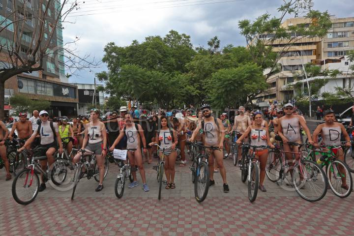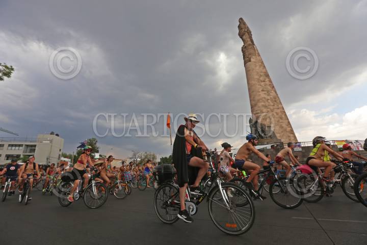 GUADALAJARA, JALISCO. 15JUNIO2019.- Esta tarde cientos de ciclistas tapatíos realizaron la novena rodada al desnudo denominada “World Naked Bike Ride Guadalajara”, en donde recorrieron las principales avenidas de la ciudad, partiendo de la Glorieta de los Niños Héroes y como destino el mismo punto, dicho recorrido es para concientizar a la sociedad en general de la cultura vial y el respeto a peatones y ciclistas. FOTO: FERNANDO CARRANZA GARCIA / CUARTOSCURO.COM