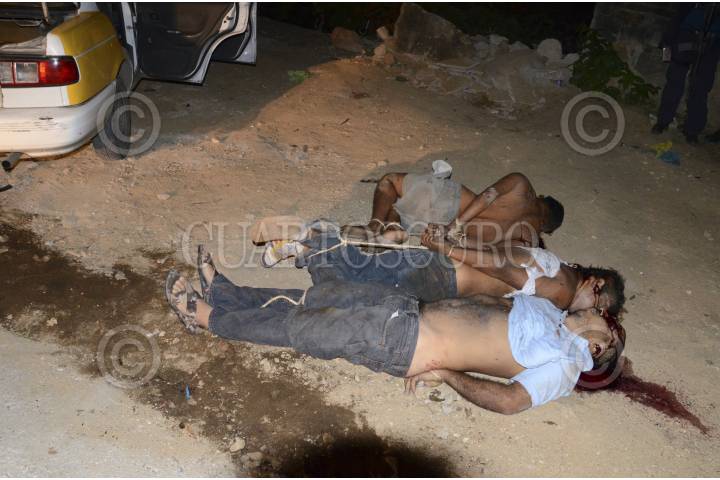 ACAPULCO, GUERREO, 03NOVIEMBRE2011.- 5 personas fueron ejecutadas en las primeras horas del jueves, vecinos de la Calle Niño Perdido, cerca del Jardín de niños "Antonio Nava de Catalán", en la Colonia María de la O , reportaron disparos así como la presencia de hombres muertos; al lugar acudieron agentes de la Policía municipal y estatal. En el lugar estaban tirados sobre la calle 5 individuos muertos alrededor y uno dentro de un taxi colectivo amarillo con blanco de la ruta Coloso; todos con impactos de bala en la cabeza, amarrados de pies y manos. "En el lugar se localizaron 19 casquillos del calibre 38 súper y los occisos quedan en calidad de desconocidos ya que no se localizaron identificaciones", señala el reporte ministerial. FOTO: BERNANDINO HERNÁNDEZ/CUARTOSCURO.COM