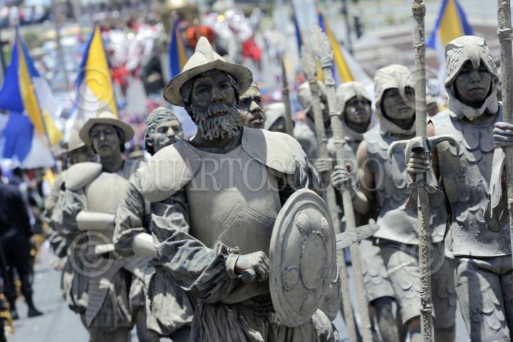 PUEBLA, PUEBLA, 05MAYO2014.- Militares, enfermeras, contingentes y mas de quince carros alegóricos, avanzaron a lo largo de la Calzada Zaragoza y Bulevard 5 de Mayo, como parte del desfile conmemorativo al CLII aniversario de la batalla del 5 de mayo en Puebla. FOTO: HILDA RÍOS/ CUARTOSCURO.COM