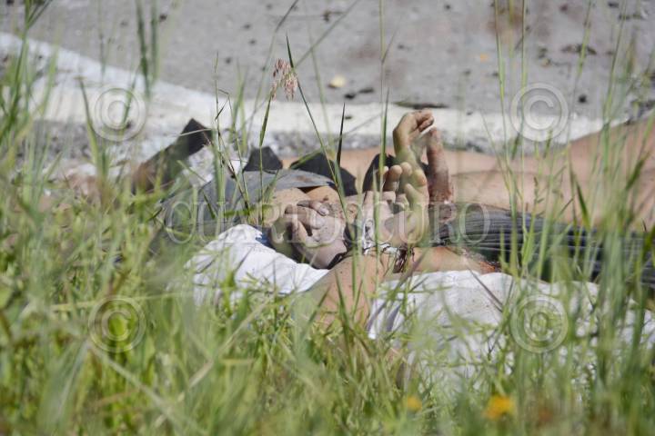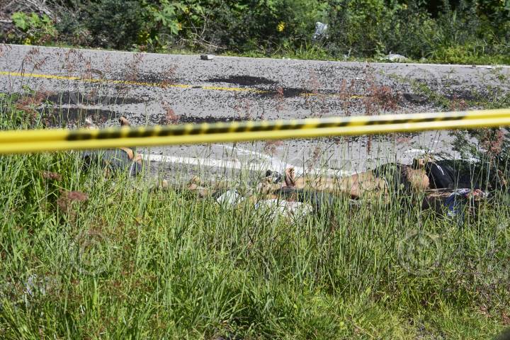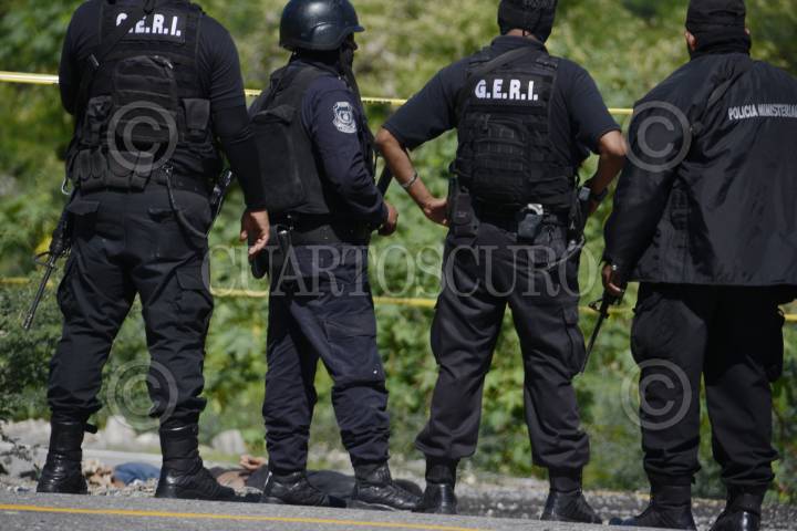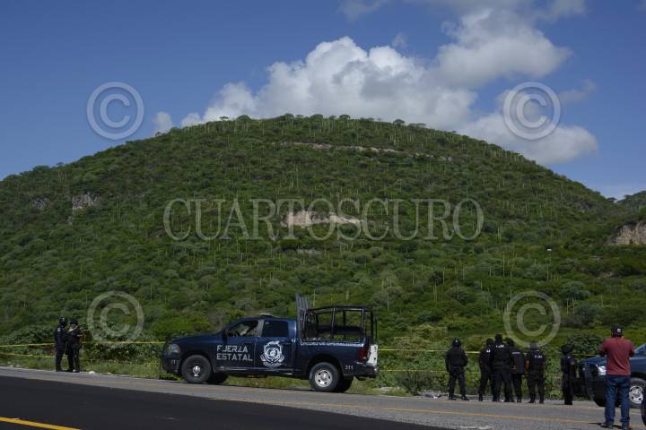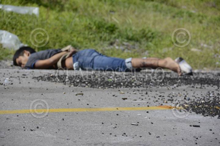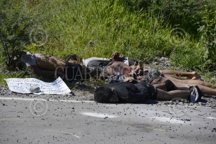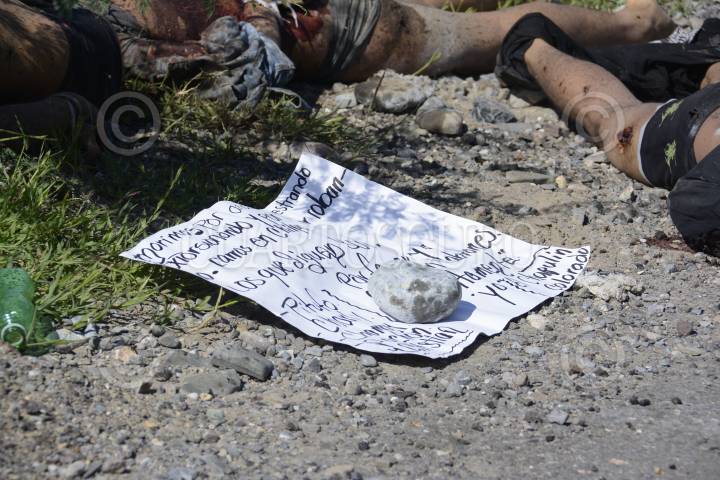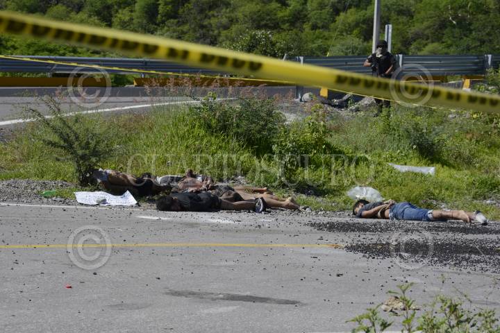 CHILPANCINGO, GUERRERO, 06JULIO2016.- Cinco jóvenes fueron encontrados ejecutados sobre la carretera federal Chilpancingo-Iguala, en el punto conocido como Casa Verde en el kilómetro 190, a un lado de los cuerpos había un mensaje del crimen organizado, policías federales resguardaron el lugar. FOTO: JOSE I. HERNÁNDEZ /CUARTOSCURO.COM