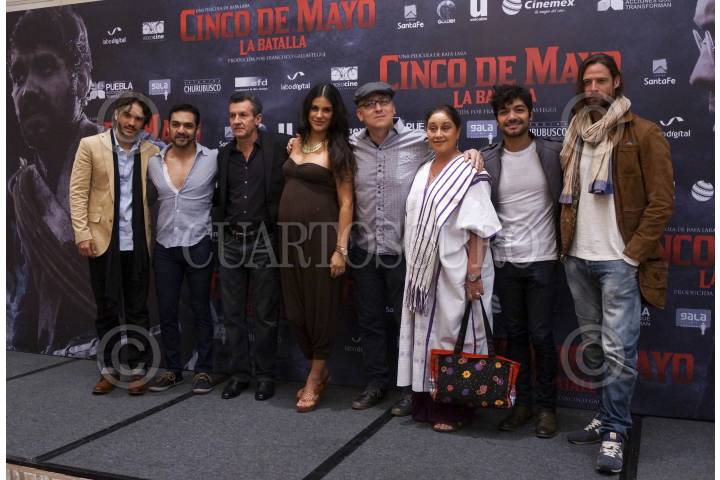 MÉXICO, D.F., 29ABRIL2013.- Kuno Becker, actor; Javier Oliván, actor; Paco Gallástehui, productor; Liz Gallardo, actriz;; Rafa Lara, director; Angélica Aragón, primera actriz; Christian Vázquez, actor; William Miller, actor; durante la presentación de la Película "Cinco de Mayo. La Batalla". FOTO: ADOLFO VALTIERRA /CUARTOSCURO.COM