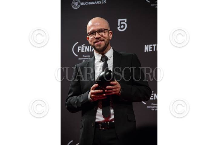 CIUDAD DE MÉXICO, 07NOVIEMBRE2018.- Juan Sarmiento ganador en la categoría Fotografía Documental de la quinta entrega de los premios Fénix que reconocen lo mejor de la cinematografía y series de Latinoamérica, España y Portugal, celebrado en el Teatro Esperanza Iris. FOTO: ANDREA MURCIA /CUARTOSCURO.COM