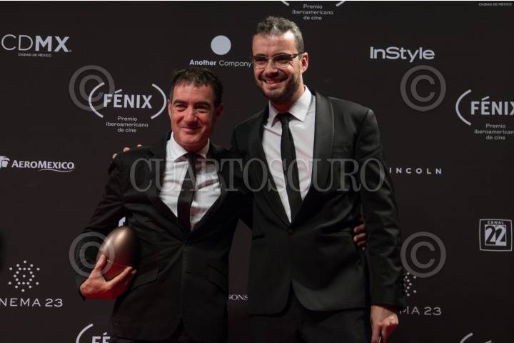 CIUDAD DE MÉXICO, 07NOVIEMBRE2018.- Alex Pina creador productor y Javier Santander coordinador de guión de la serie española La Casa de Papel, la cual se llevo premio a mejor serie del año, durante la quinta entrega de los premios Fénix que reconocen lo mejor de la cinematografía y series de Latinoamérica, España y Portugal, celebrado en el Teatro Esperanza Iris. FOTO: ANDREA MURCIA /CUARTOSCURO.COM