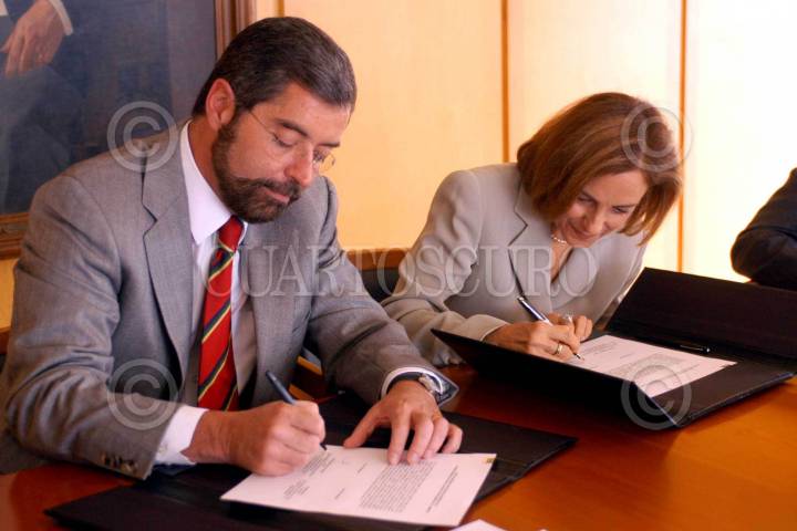MEXICO, D.F. 25ABRIL2006.- Juan Ramón de la Fuente y Diana Bracho durante la firma del acuerdo mediante el cual se instaló el Patronato de la Academia Mexicana de Artes y Ciencias Cinematográficas. FOTO:UNAM/CUARTOSCURO.COM