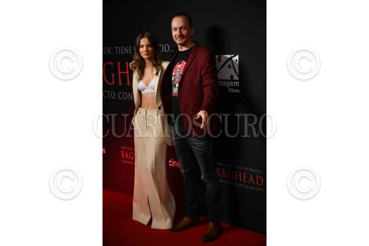 CIUDAD DE MÉXICO, 30ENERO2024.- Freya Allan, actriz británica, y Alberto Corredor, director, durante la alfombra roja de la película de terror "Baghead: contacto con la muerte", que llegará a la pantalla grande el próximo 8 de febrero. FOTO: MARIO JASSO/CUARTOSCURO.COM