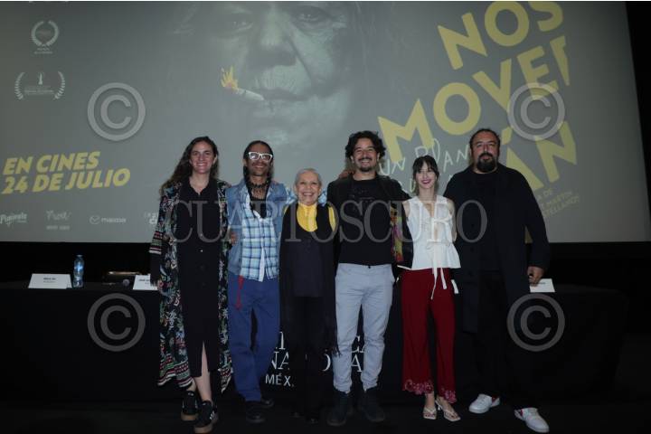 CIUDAD DE MÉXICO, 09JULIO2025. La productora, Male Gil; el actor José Alberto Patiño; la actriz, Luisa Huertas; el director, Pierre Saint-Martin; la actriz, Agustina Quinci; el productor, Víctor Léycegui durante la conferencia de Perea a de la película “No nos moverán”, en la Cineteca Nacional. Producción que tendrá su estreno a nivel nacional el 24 de julio y la cual ha conseguido diversas nominaciones a los premios Ariel 2025. FOTO: EDGAR NEGRETE LIRA/CUARTOSCURO.COM