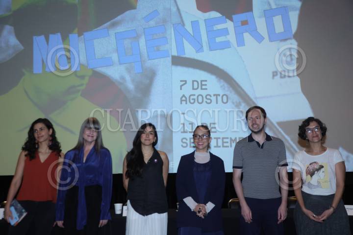 COUDAD DE MÉXICO, 25JULIO2025. Laura Batista Aranda, participante del programa “100 horas de activismo”; Åsa Hamneståhl, encargada de Asuntos Culturales de la Embajada de Suecia en México; Victoria Cabrera Escobar, directora operativa de MICGénero Tour 2025; Ana Zamboni de la coordinación de proyectos de cine y arte multimedia en México, Centroamérica y El Caribe, Programación Cultural Goethe-Institut Mexiko; Miloš Marković, encargado de negocios ad interim- Embajada de la República de Serbia en México y Berenice Ubeda Alzaga, directora del cortometraje mexicano “El límite del cuerpo” durante la conferencia de prensa para presentar la Muestra Internacional de Cine con Perspectiva de Género “MICGénero Tour 2025”, en la Cineteca Nacional. FOTO: EDGAR NEGRETE LIRA/CUARTOSCURO.COM