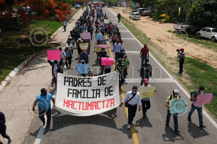 Integrantes de la Organización Sociedad Civil las Abejas de Acteal se manifestaron para exigir justicia por el asesinato de Simón Pedro Pérez López, en los juzgados de Control y Tribunales de Enjuiciamiento en Cintalapa.