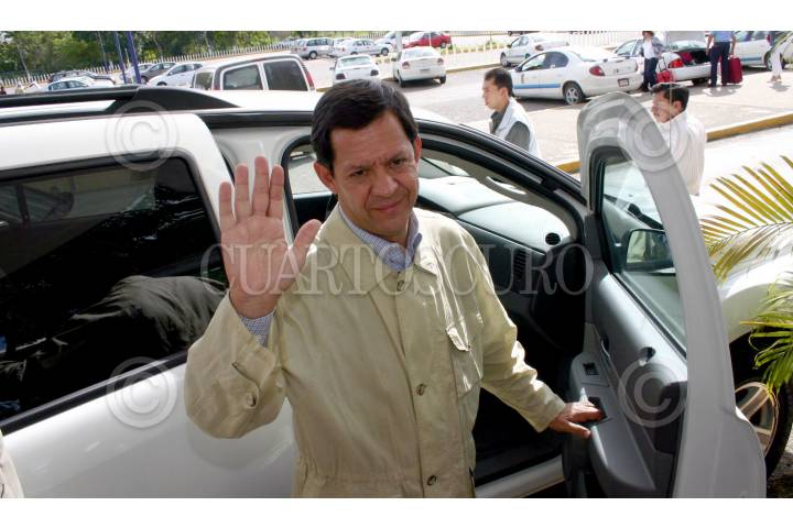 VILLAHERMOSA, TABASCO, 19ENERO2006.- Roberto Campa Cifrian, candidato a la presidencia de México por el Partido de la Nueva Alianza a su llegada al aeropuerto local, donde es recibido por David Alonso Aguirre líder del SNTE Tabasco y Manuel Paz dirigente Estatal de Partido de la Nueva Alianza. FOTO: Marco Polo Guzmán Hernández/CUARTOSCURO.COM