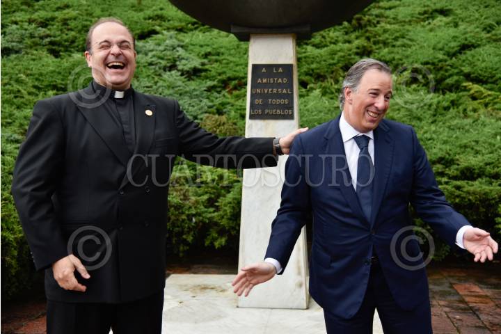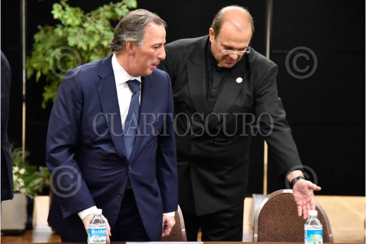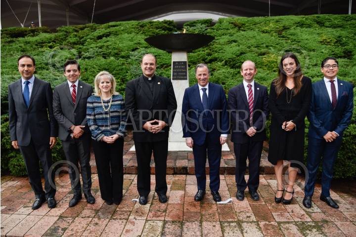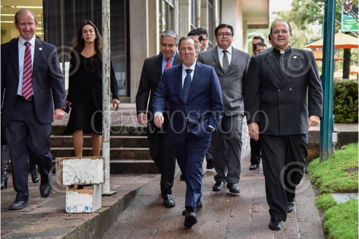 HUIXQUILUCAN, ESTADO DE MÉXICO, 02OCTUBRE2017.- José Antonio Meade, secretario de Hacienda y Crédito Público, recibió el premio “Sinergia 2017” que otorga la Universidad Anáhuac, a la mejor trayectoria en administración pública del año en curso. En la imagen, Meade fue recibido por Cipriano Sánchez García, rector de Anahuác México, y autoridades de la institución. FOTO: MARIO JASSO /CUARTOSCURO.COM