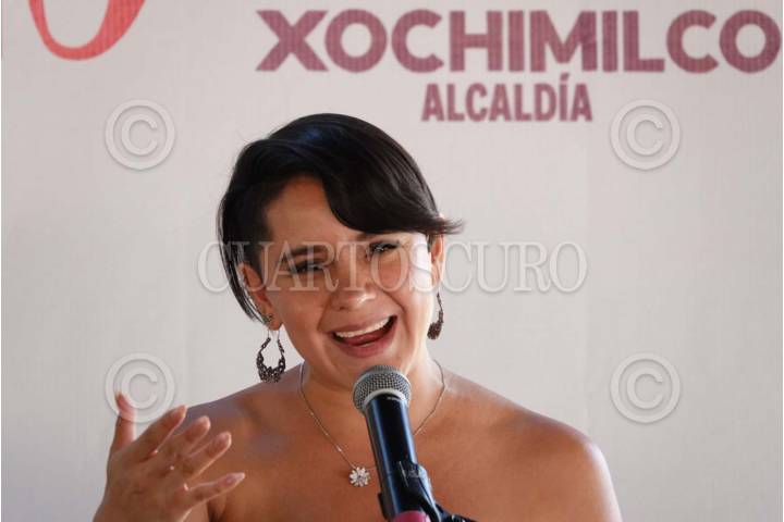 CIUDAD DE MÉXICO, 01ABRIL2025.- Circe Camacho, alcaldesa de Xochimilco, durante su participación en una conferencia de prensa en la que anunció que La Flor Más Bella del Ejido 2025 se realizará del próximo 6 al 13 de abril en diferentes puntos de encuentro de esta demarcación. FOTO: GRACIELA LÓPEZ/CUARTOSCURO.COM