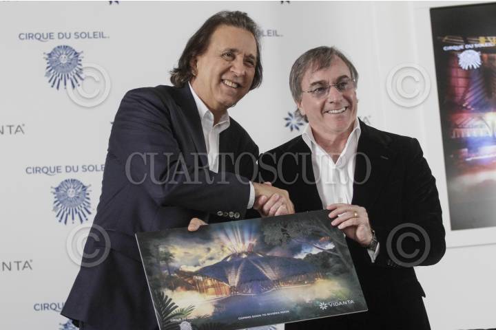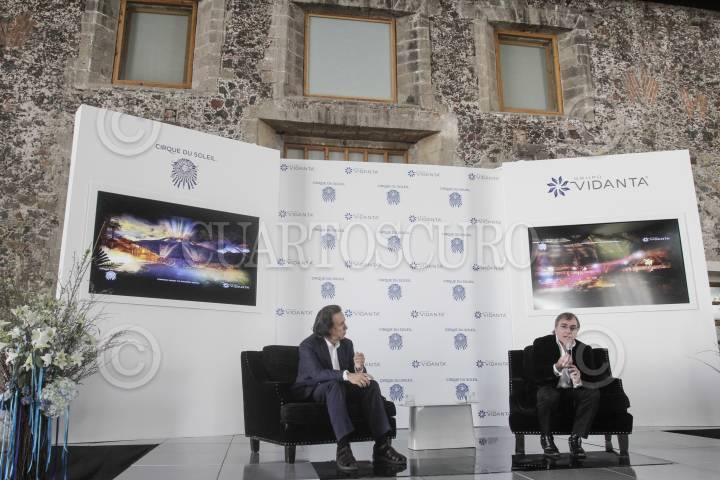 MÉXICO, DF., 11FEBRERO2014.- Daniel Chávez Morán, fundador de Grupo Vidanta, y Daniel Lamarre, presidente de Cirque Du Soleil, ofrecieron conferencia de prensa donde anunciaron que el grupo hotelero invertirá en un teatro en la Rivera Maya, dónde el Cirque du Soleil tendrá un espectáculo de forma permanente. FOTO: ISAAC ESQUIVEL /CUARTOSCURO.COM