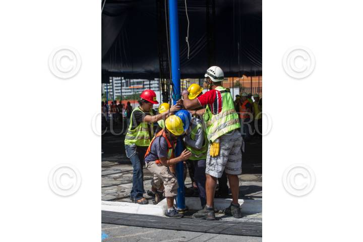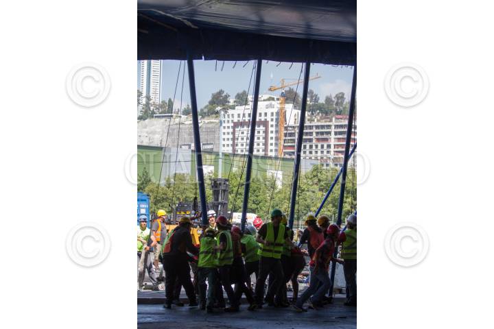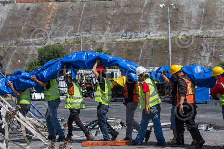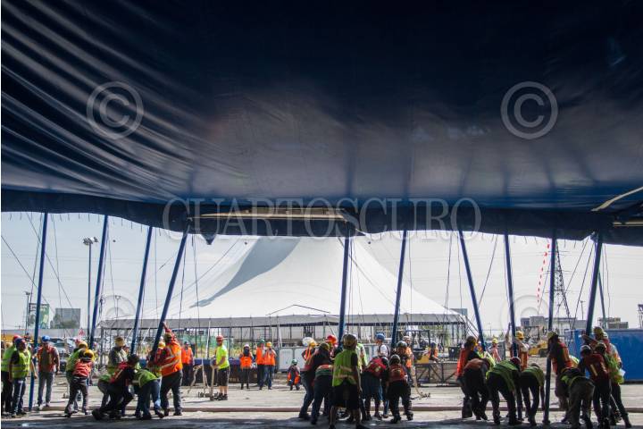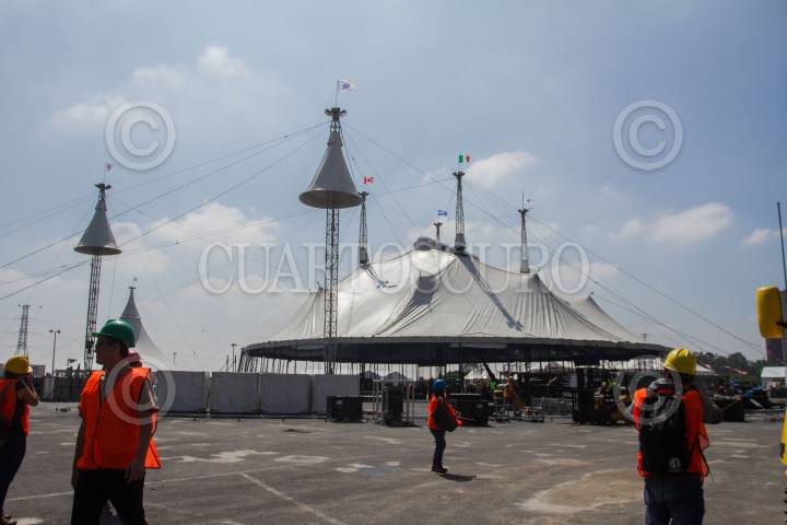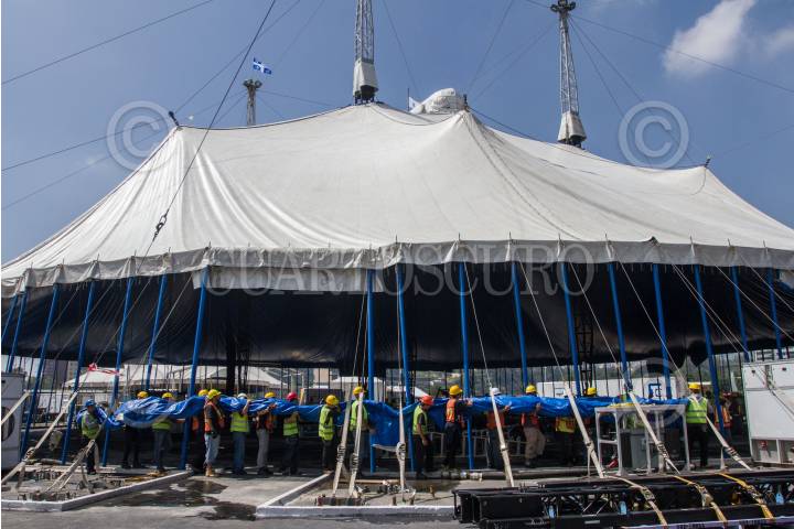 CIUDAD DE MÉXICO, 11NOVIEMBRE2022.- Levantamiento de la Carpa Santa Fe que albergará el espectáculo “Zooka” del Cirquero du Soleil. FOTO: EDGAR NEGRETE/CUARTOSCURO.COM