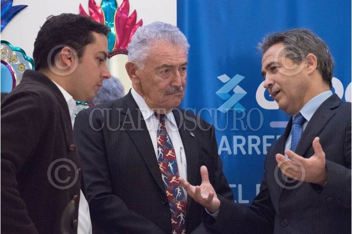 CIUDAD DE MÉXICO, 14JUNIO2019.- César Moreno Bravo, representante de la IAAF en México, recibió el premio "39 edición del Media Maratón: Carrera del Padre 2019", el cual es una representación en miniatura de la escultura "Hombre Corriendo, Ruta de la Amistad" de Germán Cueto. A su vez, se inauguró la Expo Carrera del Padre 21 K en Campo Marte, en donde, cientos de participantes recogieron sus acreditaciones de corredores. La carrera se realizará el próximo domingo 16 de junio, teniendo como punto de partida los carriles centrales de Periférico Sur, casi frente al Hotel Radisson Pedregal, y con la meta en calle Zacatépetl frente a la Iglesia de la Esperanza. En la imagen, el galardonado, en compañía de Rodrigo Dosal, titular del Instituto del Deporte de la capital y José Luis Beato, secretario de Desarrollo Económico de la ciudad. FOTO: MARIO JASSO /CUARTOSCURO.COM