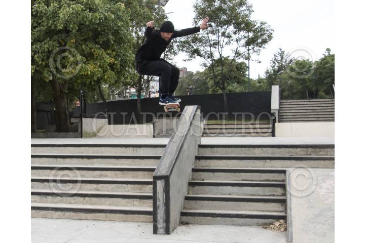 CIUDAD DE MÉXICO, 08OCTUBRE2019.- Joven realiza un salto elevándose por seis escalones con su patineta, en el circuito Parque Skate Constituyentes. FOTO: ROGELIO MORALES /CUARTOSCURO.COM