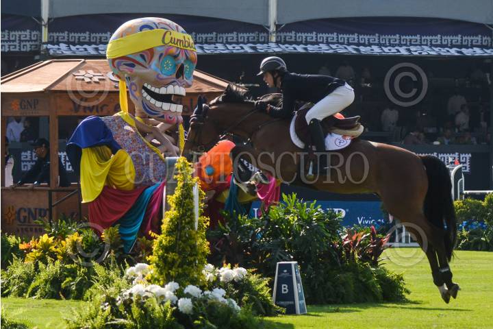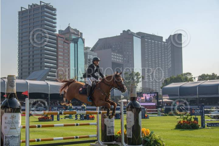 Nicole Meyer, jinete mexicano, durante su participación en el "Trofeo Banorte" del Longines Global Champions Tour México 2022 realizado en el Campo Militar Marte.