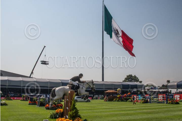 Felipe Gaspar, jinete mexicano, durante su participación en el "Trofeo Banorte" del Longines Global Champions Tour México 2022 realizado en el Campo Militar Marte.