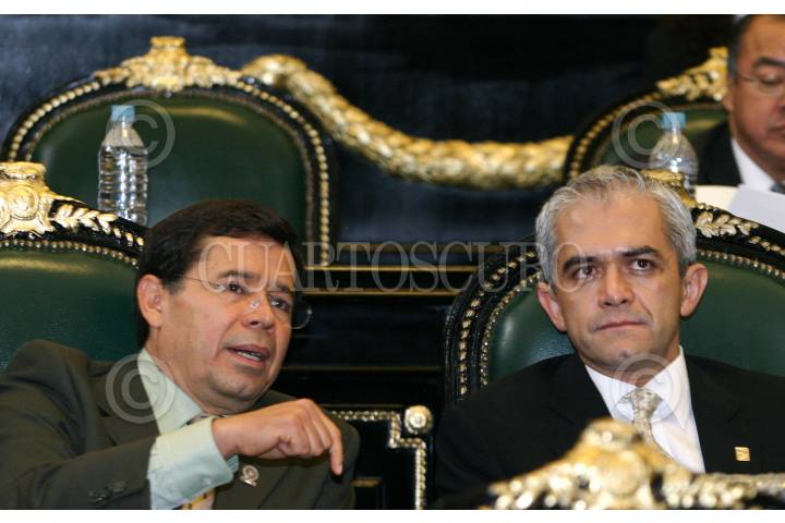 MÉXICO, D.F., 23ABRIL2009.- Los asambleístas del PRD, Agustin Guerrero, Victor Hugo Cirigo y Miguel Angel Mancera, Procurador de Justicia del Distrito Federal, quien compareció esta tarde en la Asamblea Legislativa del D.F., donde rindió cuentas sobre su trabajo en este cargo. FOTO: RICARDO CASTELAN/CUARTOSCURO.COM