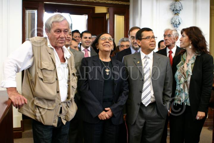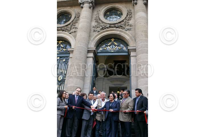 MÉXICO, D.F., 05AGOSTO2009.- Alfonso de María y Campos del INAH; Victor Hugo Cirigo, presidente de la Comisión de Gobierno de la Asamblea Legislativa; el diputado Salvador Martínez de la Roca y Alejandra Moreno Toscano, Autoridad del Centro Histórico durante la ceremonia de inauguración de la fachada del recinto de la Asamblea Legislativa por la conclusión de los trabajos de restauración. FOTO: RODOLFO ANGULO/CUARTOSCURO.COM